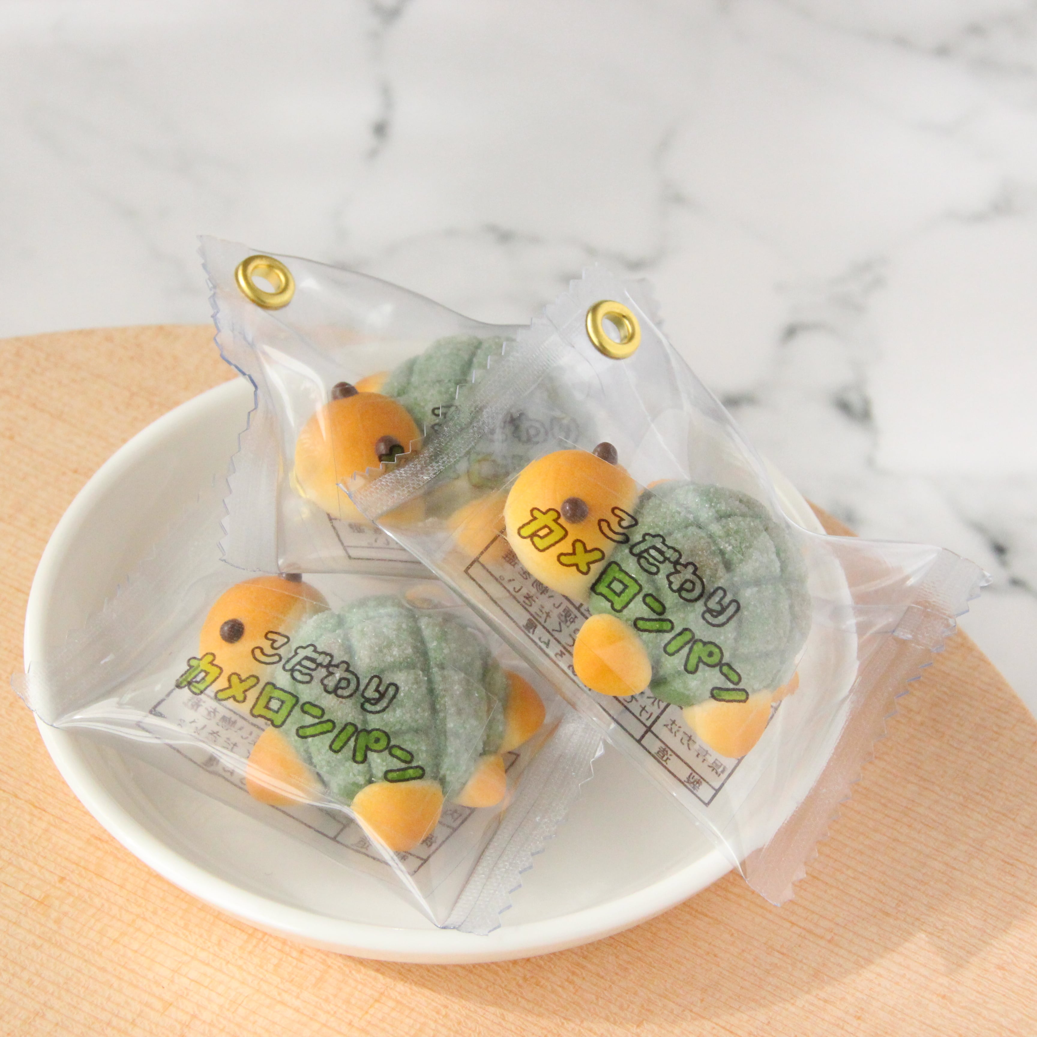 甲羅のメロンパンの部分は本物同様に、ひとつひとつパン生地をクッキー生地で包んで作っています。