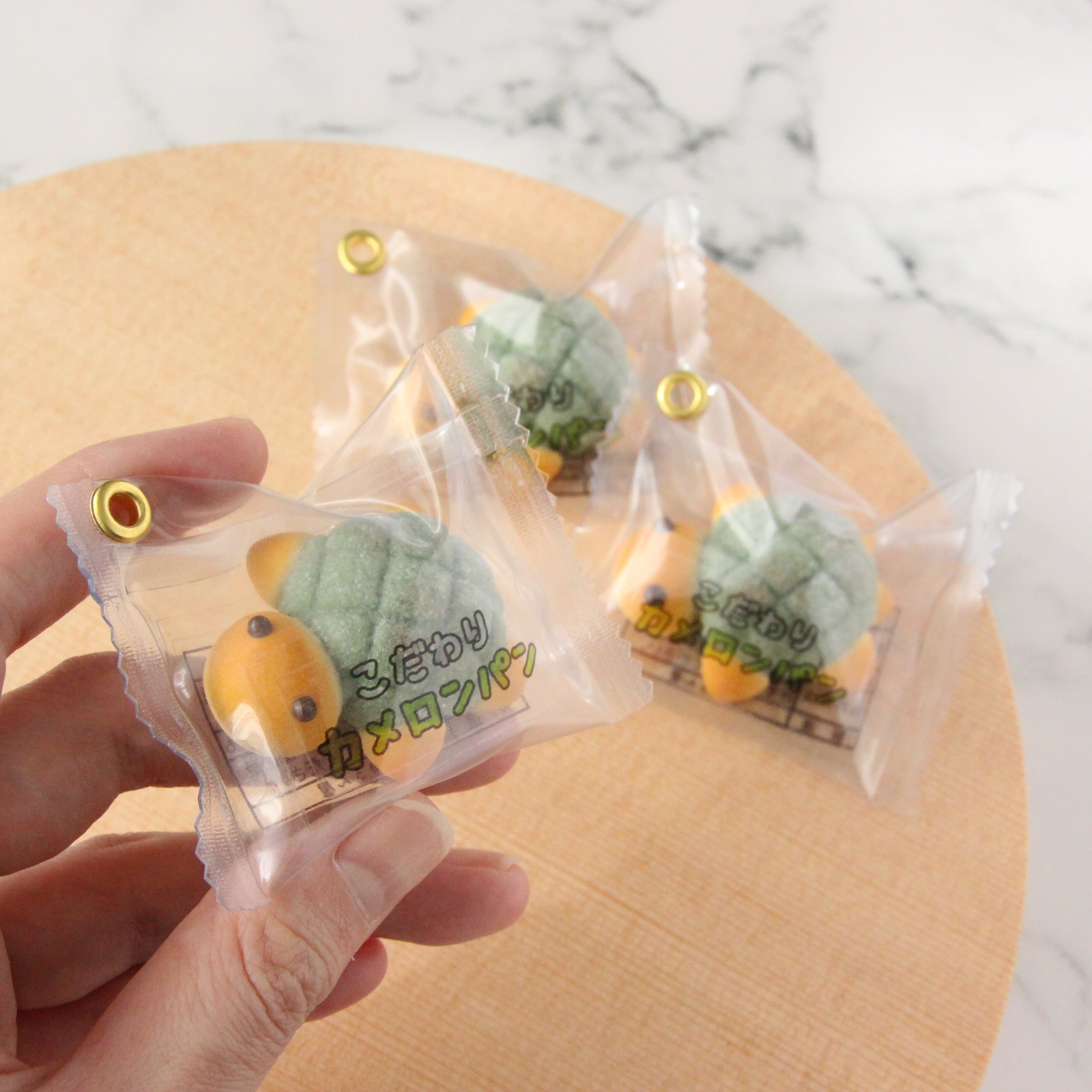 大きめのカメロンパンをオリジナルパッケージに入れてチャームに仕上げました。
